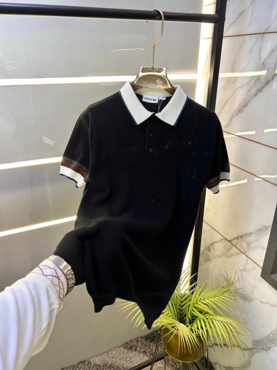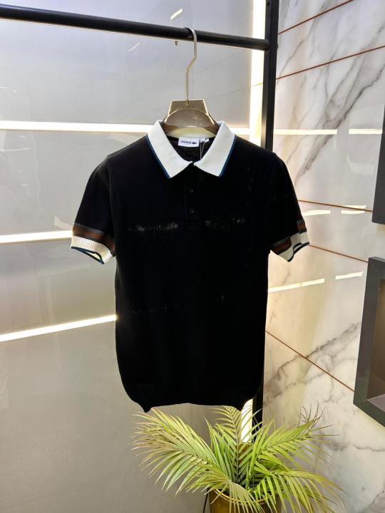 Lacost e Imported Black Premium Collar Neck Polo T-shirt F3524-BL